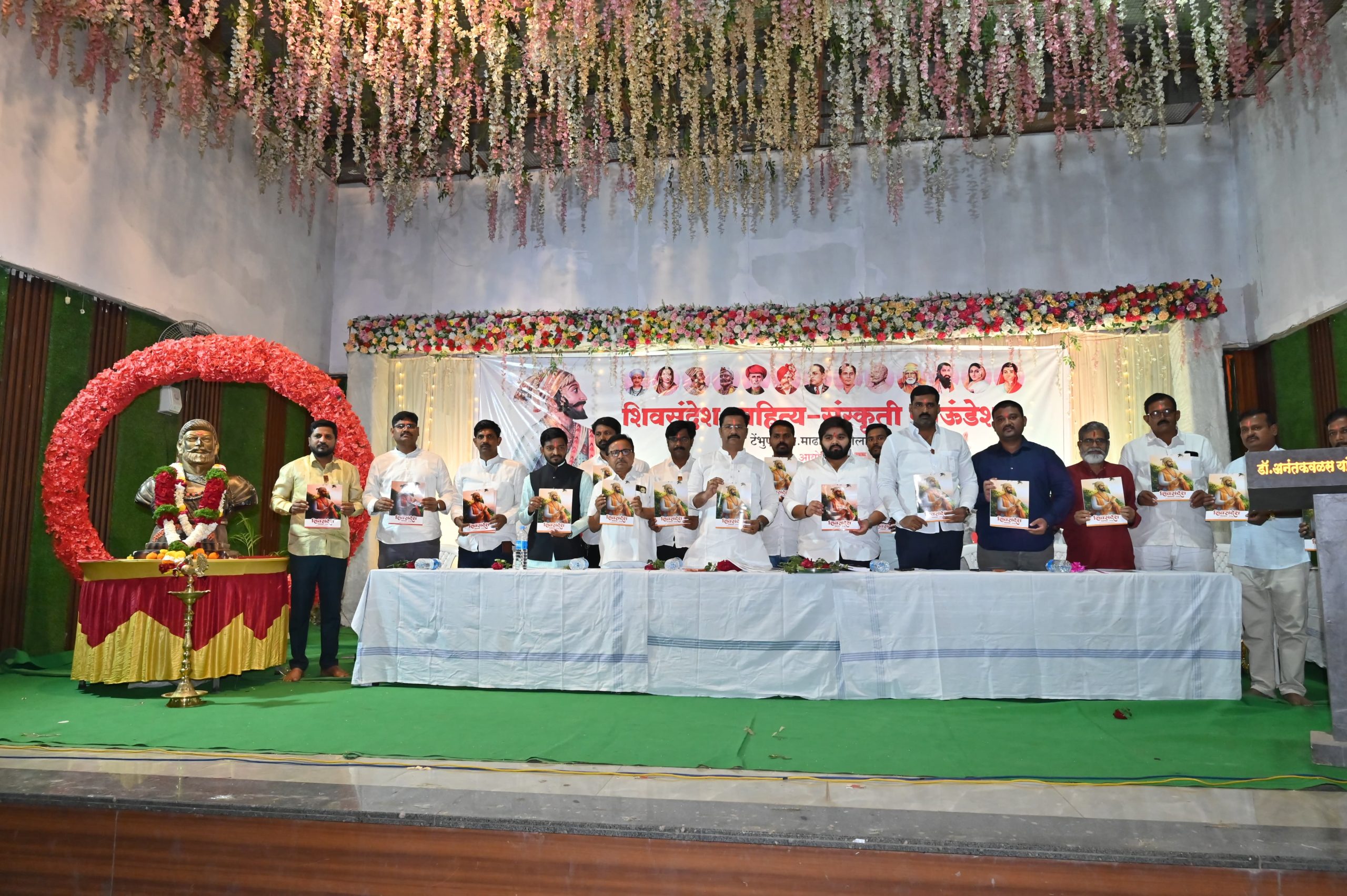 शिवसंदेश साहित्य-संस्कृती फाऊंडेशनच्या वतीने शिवजन्मोत्सवाच्या निमित्ताने टेंभुर्णीत शिवसंदेश-शिवजयंती विशेषांकाचा प्रकाशन सोहळा माढा विधानसभा मतदारसंघाचे आमदार अभिजित पाटील, ज्येष्ठ साहित्यिक हरिश्चंद्र पाटील, राष्ट्रवादीचे तालुकाध्यक्ष बाळासाहेब पाटील, राष्ट्रवादी युवक काँग्रेसचे जिल्हाध्यक्ष सुरज देशमुख, जेएसपीएमचे चेअरमन ऋतुराज सावंत यांच्या शुभ हस्ते पार पडला. यावेळी यावेळी शिव व्याख्याते खंडुजी डोईफोडे, उद्योजक विजय देशमुख, डॉ.धनाजी खताळ, कृषी उत्पन्न बाजार समितीचे संचालक दादासाहेब देशमुख, मराठा सेवा संघाचे माढा तालुकाध्यक्ष निलेश देशमुख,संभाजी ब्रिगेडचे पश्चिम महाराष्ट्र अध्यक्ष सचिन जगताप, तालुका कार्याध्यक्ष बाळासाहेब वागज, माळशिरस तालुका अध्यक्ष दिगंबर मिसाळ, उपाध्यक्ष सचिन पराडे, नागेश व्यवहारे, सचिन महिंगडे , प्रताप काळे, प्रशांत जगताप यांच्यासह मान्यवर उपस्थित होते. शिवसंदेश विशेषांकासाठी व कार्यक्रम यशस्वी करण्यासाठी शिवसंदेशचे शंकर नागणे,अविनाश नांगरे,विजय काळे ,गणेश गोंदिल,अस्लम तांबोळी ,ऋषिकेश भंडारे,प्रशांत खंडागळे,ओंकार पाटील, आसिफ शेख,शुभम मोरे,जोतीराम बागवले,साहिल ताबे,गजेंद्र पंडित, हर्षद मोरे,विजय गायकवाड,विजय मोरे ,महेश ढगे,वैभव पवार ,गणेश जगताप,रणजीत मोरे,जयंत खंडाळे, प्रदीप कटवटे, सुदर्शन पंपटवार यांनी परिश्रम घेतले.