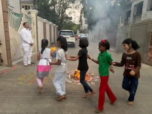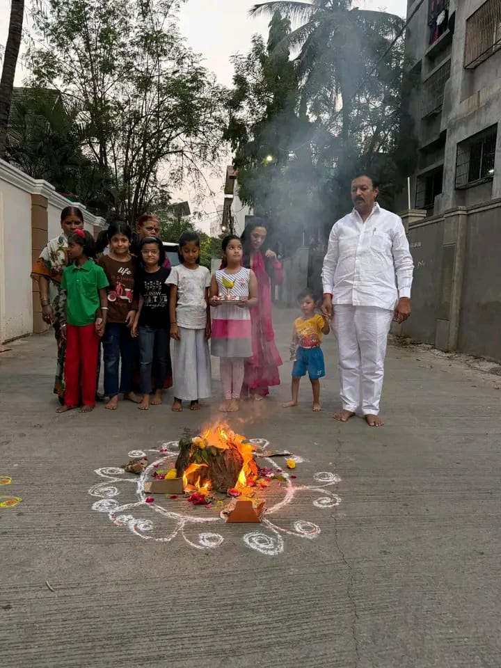 यावेळी होळीचे पूजन करून सर्वांच्या आयुष्यात सुख, समृद्धी आणि आनंद नांदो यासाठी प्रार्थना करण्यात आली. कुटुंबीय व नातवंडांच्या उपस्थितीत उत्साहपूर्ण वातावरणात होळी साजरी करण्यात आली.