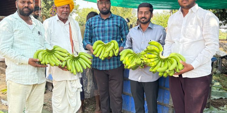 सोलापूर… दक्षिण सोलापूर तालुक्यातील मंद्रूप येथील हुवण्णा सिध्दप्पा व्हनमाने यांच्या शेतातील जी९ केळीला रशियाच्या बाजारपेठात मागणी असल्यामुळे पहिल्या टप्प्यात आठ टन केळीची निर्यात करण्यात आली आहे . मंद्रूप येथील केळीचे व्यापारी जाफर बागवान यांनी रशिया येथील कंपनीशी समन्वय साधून व्हनमाने यांची केळी रशियाला पाठविली आहे . त्यामुळे मंद्रूपमधील शेतकर्याची केळी रशियाच्या बाजारपेठेत पोहोचल्याने सचिन अंकुश व्हनमाने या तरूण शेतकर्यामुळे मंद्रूपच्या शिरपेचात मानाचा तुरा रोवला आहे.