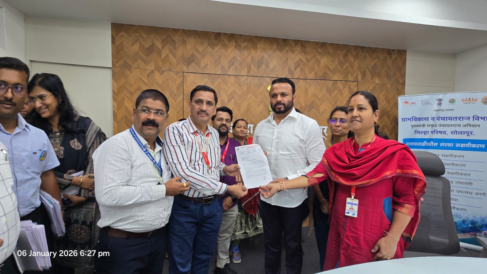 जिल्हास्तरावर जिल्हा पाणी व स्वच्छता मिशन कक्षात जलजीवन मिशन व स्वच्छ भारत मिशन (ग्रामीण) अंतर्गत गेल्या २० वर्षापासून कर्मचारी एकत्रित काम करीत आहेत. या कर्मचाऱ्यांना ग्रामविकास विभागात कायम करण्याचा आदेश छत्रपती संभाजीनगर मॅट न्यायाधिकरणाने दिला आहे. या आदेशाची प्रत व निवेदन ग्रामविकासमंत्री गोरे यांना पाणी व स्वच्छता कर्मचारी कृती समितीचे राज्याचे कार्याध्यक्ष सचिन जाधव यांनी दिले.